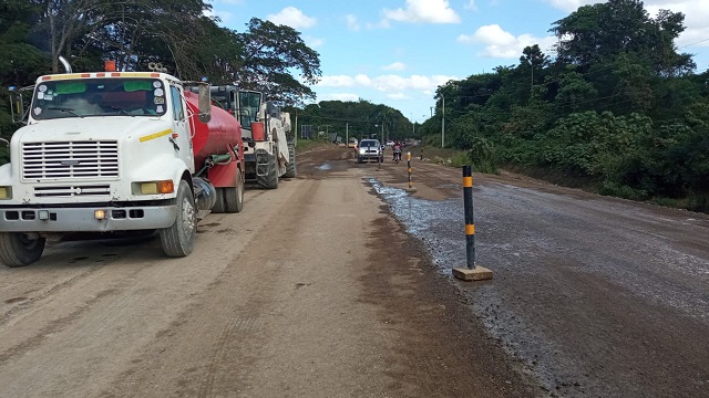 Los trabajos de la importante vía están a cargo del Consorcio Carretera Hato Mayor –El Puerto. El ingeniero Wilmer Castro, encargado de la estructura de pavimento, dijo que iniciaron con la primera etapa colocando cal para estabilizar la subbase para darle un mejor comportamiento al material, debido a que los materiales de la cantera por sí sólo no tienen la resistencia requerida.