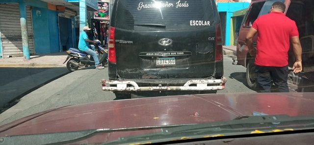 Indicaron que la guagua es color negro, tiene en el cristal trasero “Gracias Señor Jesús”, además dice Escolar y encima de la placa dice Jesús más fuerte que todo.