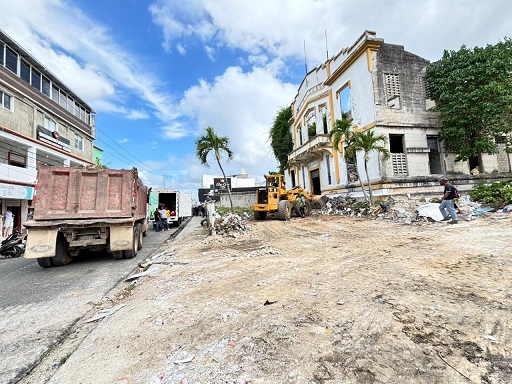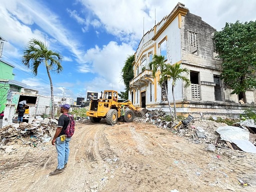 SAN PEDRO DE MACORIS, sábado 7 de marzo 2026.– La Alcaldía de San Pedro de Macorís realizó un amplio operativo de limpieza y retiro de escombros en el edificio abandonado de la Logia Independencia, ubicado en la calle Rafael Deligne, dentro de la ciudad.